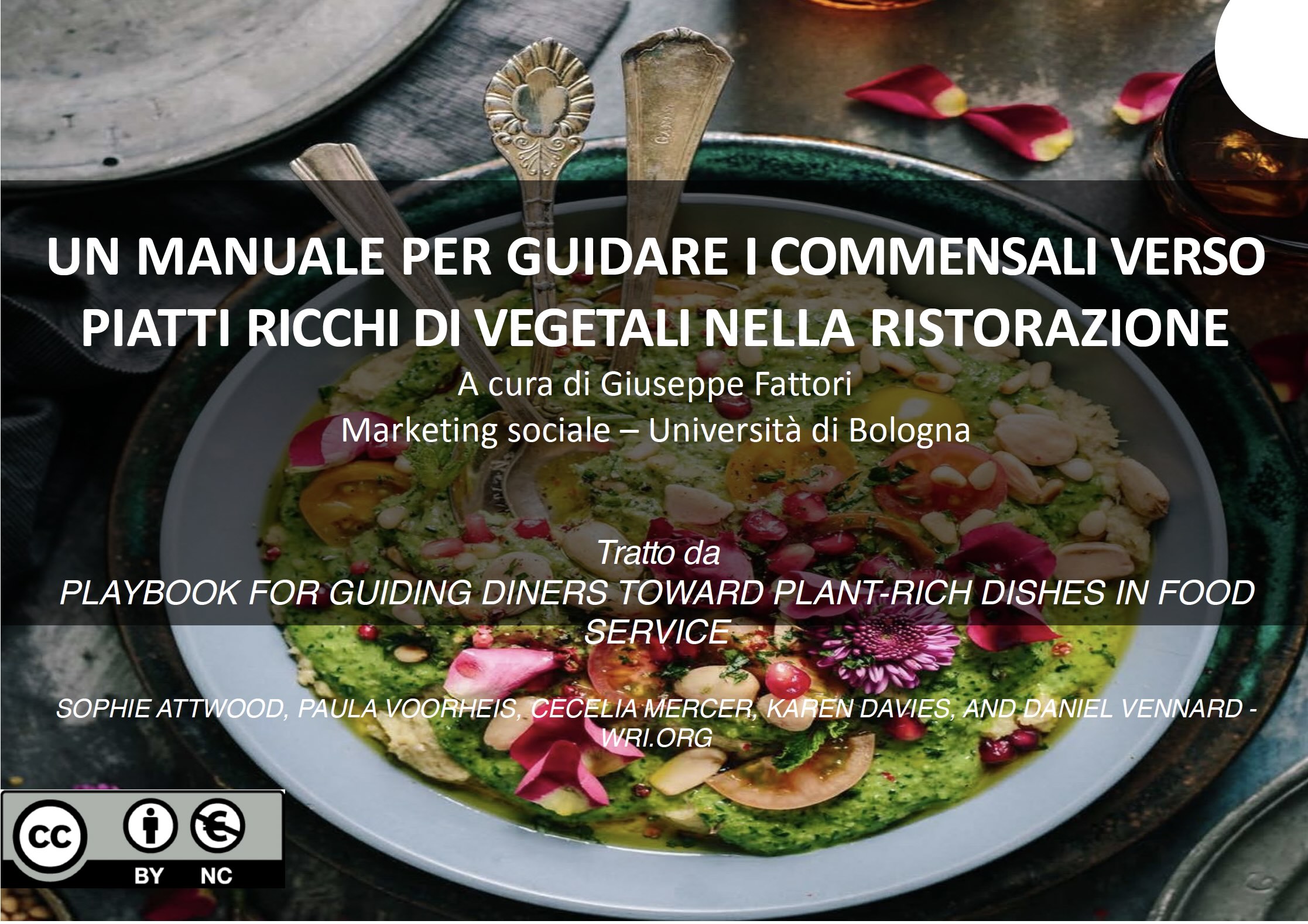 Il secondo esempio porta la presentazione a tavola. Fattori illustra i contenuti di un manuale del World Resources Institute — Playbook for Guiding Diners Toward Plant-Rich Dishes in Food Service — che descrive come orientare i clienti della ristorazione verso piatti più ricchi di vegetali. La premessa scientifica è chiara: per ogni grammo di proteine, la produzione di carne bovina richiede venti volte più terra ed emette venti volte più gas serra rispetto ai legumi come fagioli, piselli e lenticchie. L’iniziativa CoolFood si pone come obiettivo una riduzione del 25% delle emissioni legate all’alimentazione entro il 2030, in linea con il limite di 1,5°C dell’Accordo di Parigi.