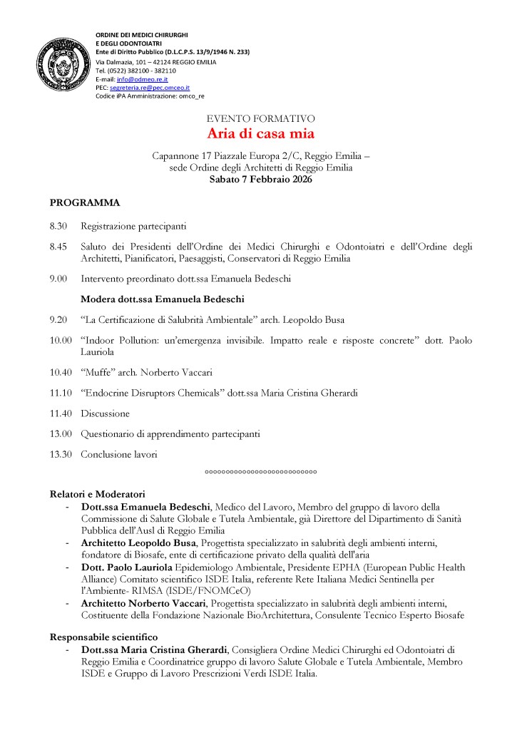 Coordinamento ISDE Emilia Romagna per “Inquinamento atmosferico e salute (in costruzione)