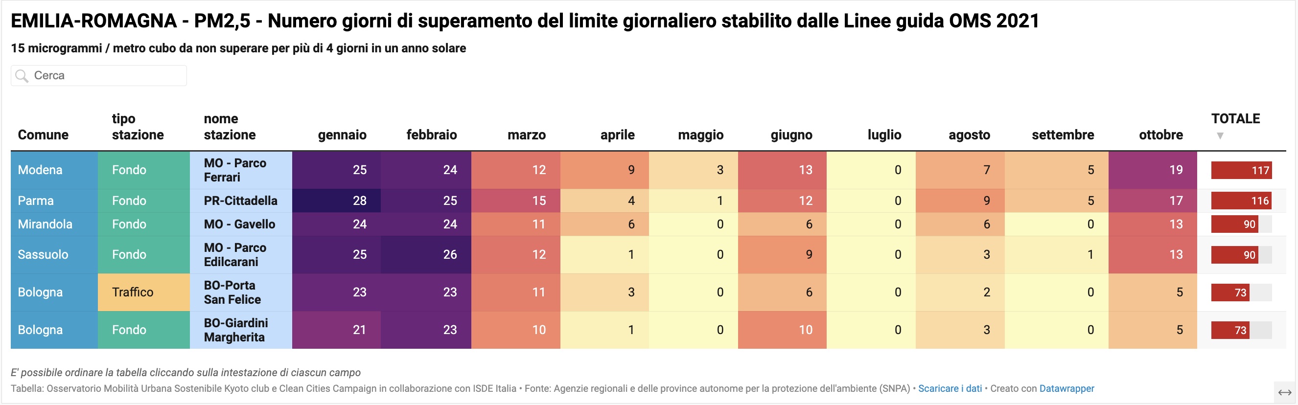 I dati elaborati dall’Osservatorio Mobilità Urbana Sostenibile e Clean Cities Campaign in collaborazione con ISDE (medici per l’ambiente) Italia rilevano i livelli di PM10, PM2,5 e NO2, i superamenti dei valori raccomandati dall’OMS e i nuovi limiti previsti dalla Direttiva Europea.